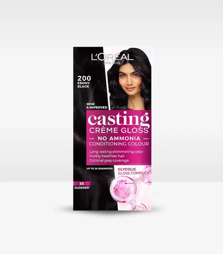 The L’Oréal Casting Crème Gloss Hair Color – Deep Black 200 is a semi-permanent, no-ammonia hair dye that enhances your natural beauty with a bold, glossy black shade. Designed to cover first greys while leaving your hair silky soft, this formula delivers vibrant results that last up to 28 shampoos. Buy Online the Original Loreal Casting Cream Gloss Hair Color - Deep Black 200 for the Best and Lowest Price in Sri Lanka at Watsans.lk.