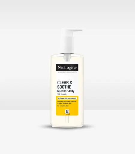 Neutrogena Clear & Soothe Micellar Jelly Make Up Remover 200ml gently removes even waterproof makeup while calming sensitive skin with turmeric-infused micellar jelly.