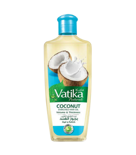 Nourish your hair from root to tip with Vatika Naturals Coconut Enriched Hair Oil, infused with coconut, castor, amla, and henna for stronger, shinier, and thicker hair. Free from parabens, sulfates, and silicones.